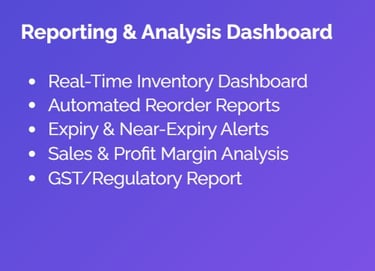 Inventory Management : Track drug inventory, expiry dates, stock levels, supplier management.